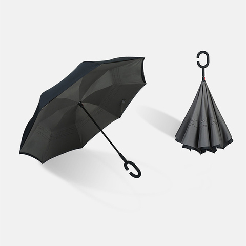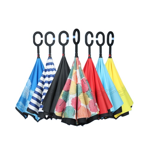 K95 Venta caliente paraguas de viaje invertido lluvia de doble capa en forma de C mango paraguas inverso