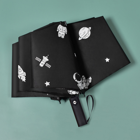 DD3564 우주인 우산 로고 사용자 정의 비닐 3 접는 UV 보호 여행 비 태양 우주 비행사 인쇄 우산